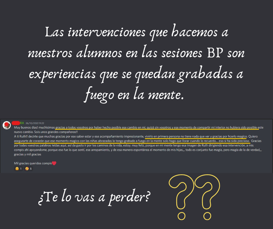 Si fuésemos un grupo grande se quedaría muchísima gente sin la posibilidad de recibir una intervención estratégica durante la formación, y eso podría perjudicar en el proceso. Al ser un grupo reducido, si vemos que lo necesitas tendrás la oportunidad de que te intervengamos.