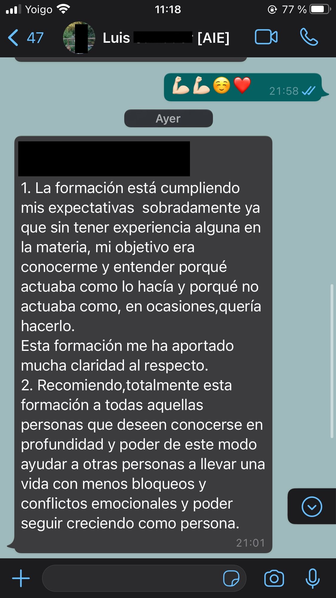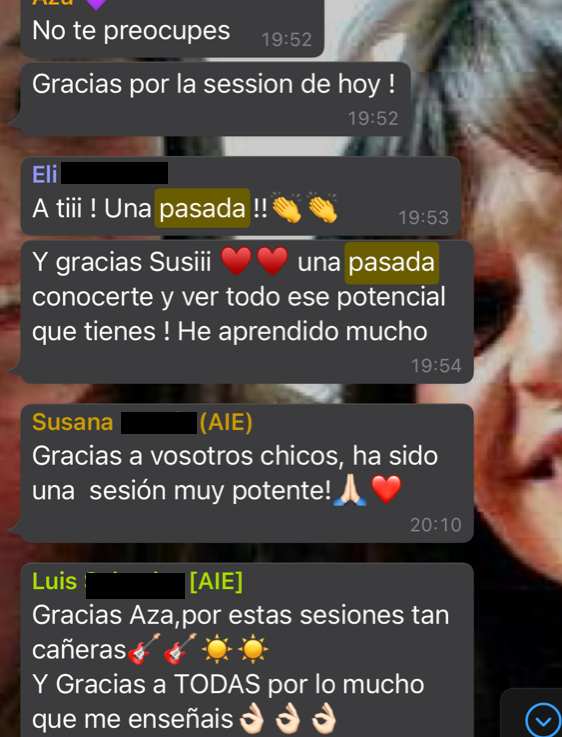 «Estoy muy familiarizada con muchas de las técnicas de desarrollo personal, lo que nunca había probado es una intervención… Y sólo puedo decir que para mi fue transformador… Al recordarlo se me ponen los pelos de punta…Para mi esta intervención no tiene precio…»