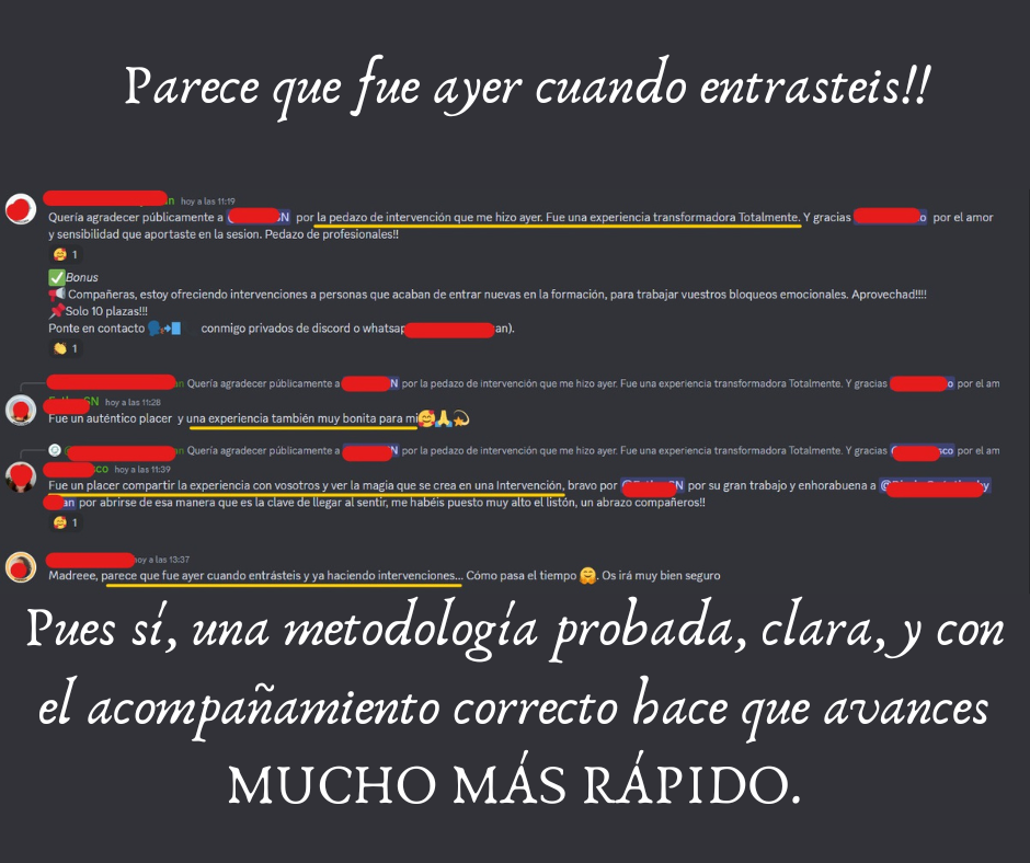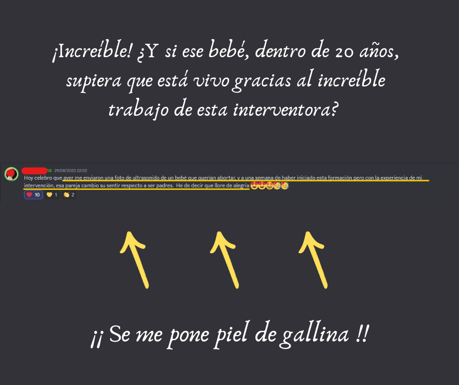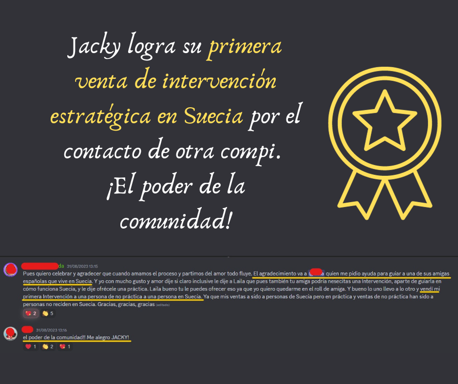 «…Ya había vivido lo que era una intervención estratégica y sabía lo que eso podía llegar transformar la vida de una persona, así que cuando se abrió la oportunidad de estar en esta formación y ser Interventora Estratégica, no me lo pensé…No me arrepiento ni un momento de haber tenido esta inversión…merece la pena…ya estoy haciendo intervenciones estratégicas, me siento acompañada desde el minuto uno…»