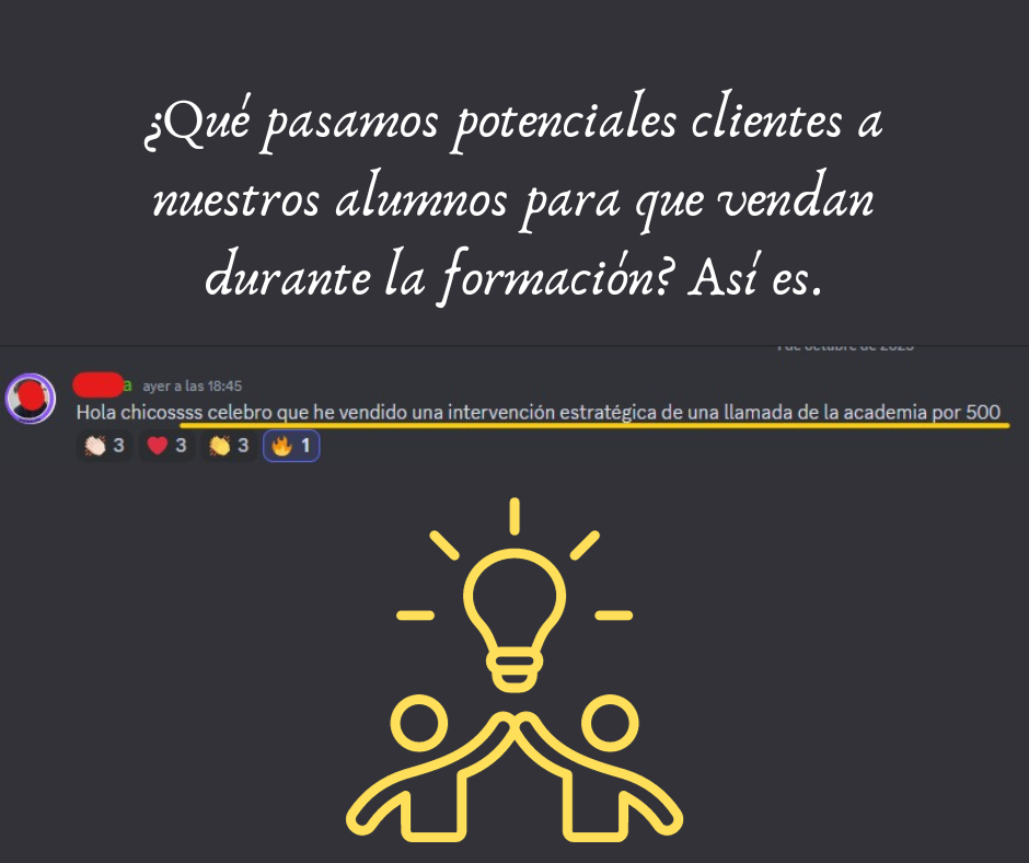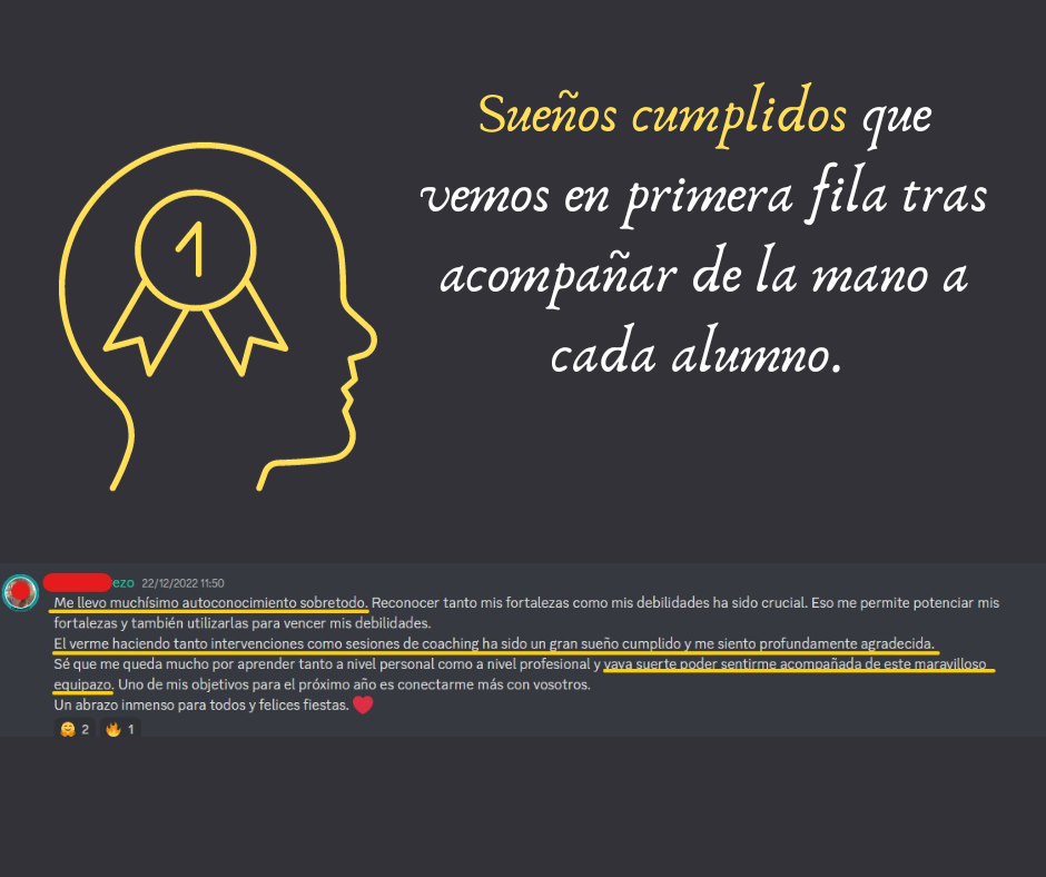 «…Hice mi primera venta en mi 5ª intervención y al chico le fue super bien…. Cuando cobras, es cuando dices, es real, está pasando ya… Esta formación es tan práctica…Yo venía de una formación de coaching y estaba todo como desordenado. Ahora sé qué pasos tengo que dar y lo uso incluso en mi día a día…