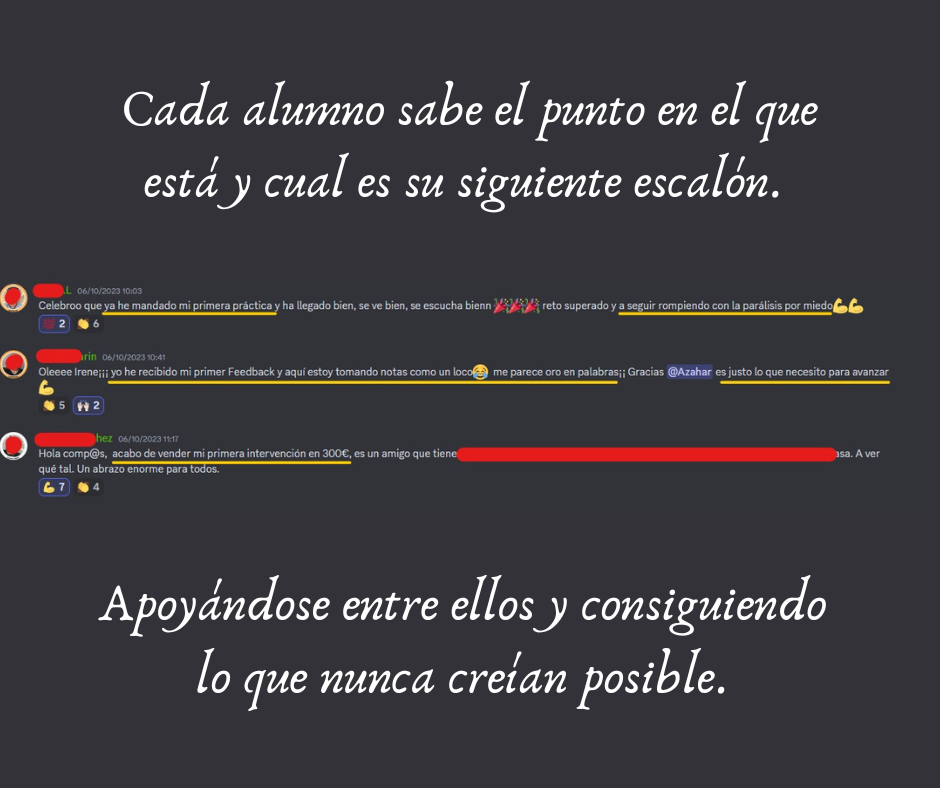 «Perdí la confianza en mi mismo, me quedé bloqueado a la hora de generar ingresos… Más que ayudar me ha transformado y ha sacado lo mejor de mi mismo. Ahora mismo soy una persona nueva… Ahora estoy haciendo cosas que llevaba bloqueado, que llevaba intentando hacer durante 6-8 meses, estoy rompiendo moldes…»