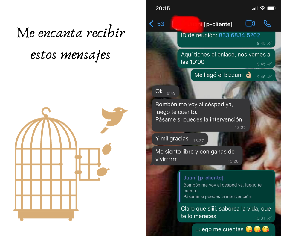 «…Menos mal que os encontré. ¿Por qué cómo hubiera gestionado la Mónica de 6 meses atrás todo lo que me ha pasado… Para mí esta herramienta ha sido el punto de inflexión, esa cuerda donde tirar para seguir con ilusión y con ganas.»